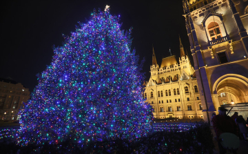 Az ünnepi gyertyagyújtás szimbólumaként felkapcsolták az Ország Karácsonyfáját díszítő fényfüzért a Kossuth téren vasárnap.