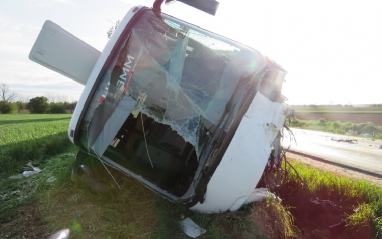 A járműszerelvénnyel szemben szabályosan közlekedő kocsi vezetője azért, hogy az ütközést elkerülje, járművét balra kormányozta, melynek következtében elvesztette uralmát az autó felett, áttért a menetiránya szerinti bal oldali forgalmi sávba és összeütközött az autóbusszal – közölte a rendőrség.