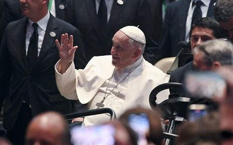 Ferenc pápa kerekes székkel érkezett a börtön udvarára, ahol kétszáz rab várta őt. Tapssal és köszönetkiáltásokkal üdvözölték a pápát.